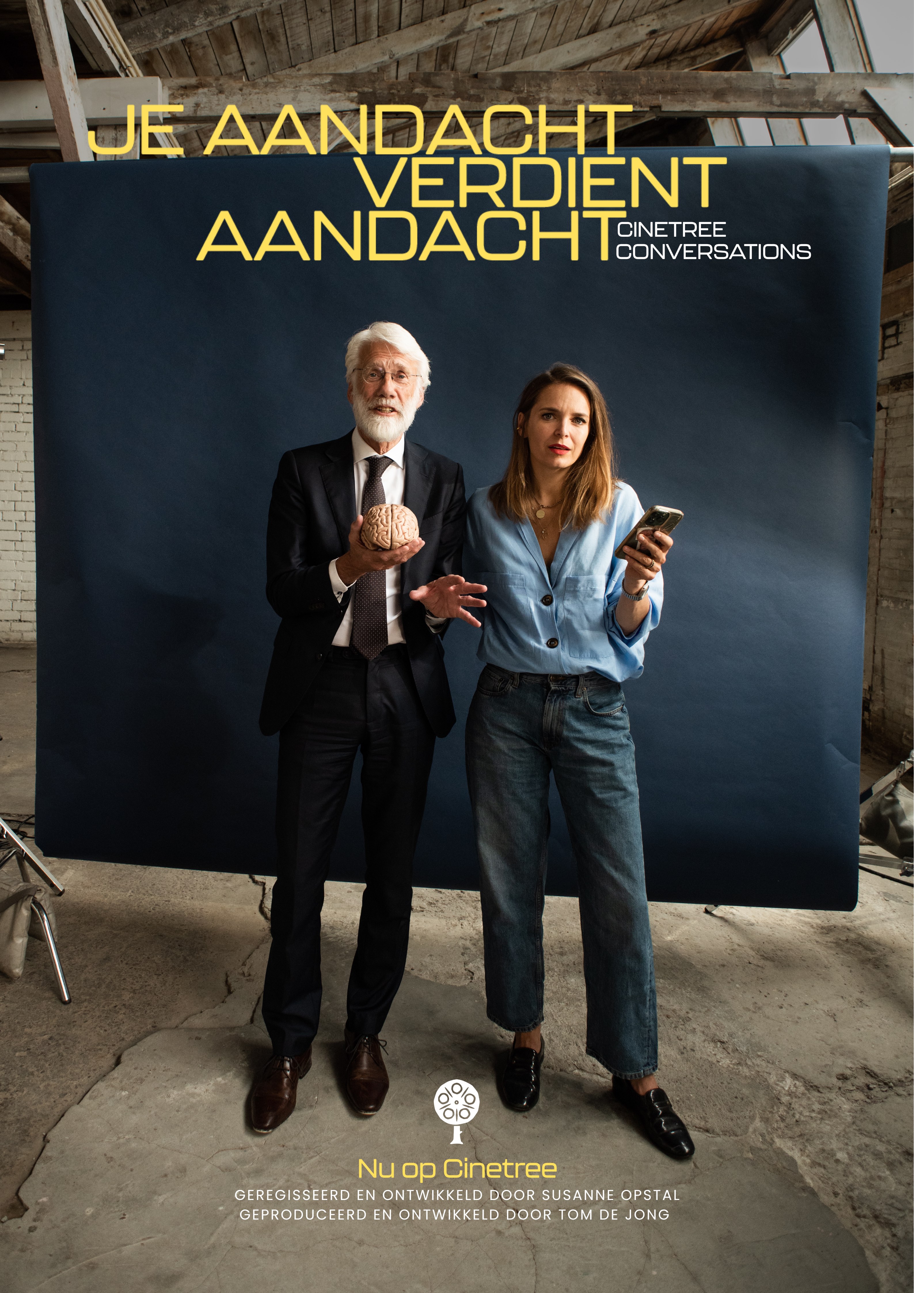 Cinetree presenteert de eerste korte documentaire van de serie Cinetree Conversations. In ’Je aandacht verdient aandacht’, duiken Hanna Verboom en hoogleraar neuropsychologie Erik Scherder in het thema van schermtijd en aandacht. In onze moderne wereld worden we overweldigd door visuele prikkels via telefoons, laptops en andere schermen, die allemaal vechten om onze kostbare tijd en aandacht. Samen onderzoeken ze de uitdagingen en bespreken ze oplossingen voor het cultiveren van aandacht in een wereld vol afleiding.