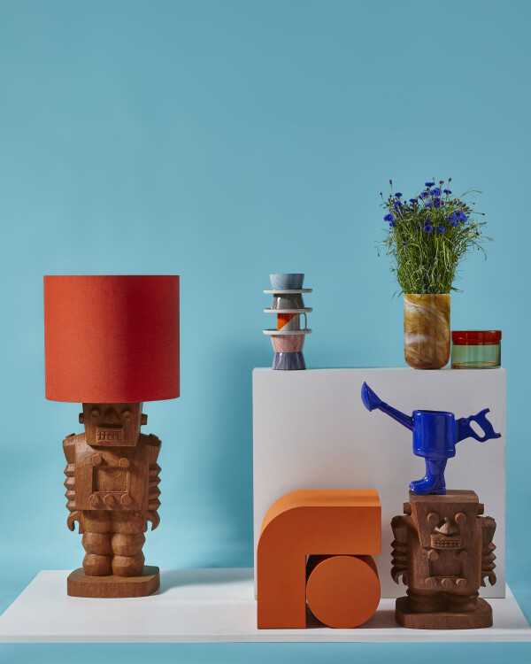 Creatieve collabs Samenwerkingen vormen al vanaf het begin het hart van POLSPOTTEN. Dit seizoen werkt het merk samen met zowel vertrouwde als nieuwe stemmen: - Hans van Bentem, met handgesneden houten robots en sculpturale verlichting; - Studio Verbaan, met de ritmisch opgebouwde metalen Kombo Side Tables; - Teun Zwets, die afvalmateriaal omvormt tot speelse, rituele objecten vol energie; - Norman Trapman, die zijn iconische Coral Vase Tulips dit seizoen uitbreidt met meer variaties in goud en zilver. |